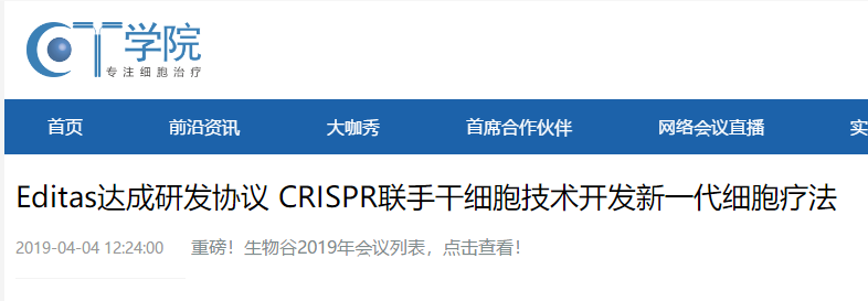 Editas達成研發(fā)協(xié)議 CRISPR聯(lián)手干細胞技術(shù)開發(fā)新一代細胞…