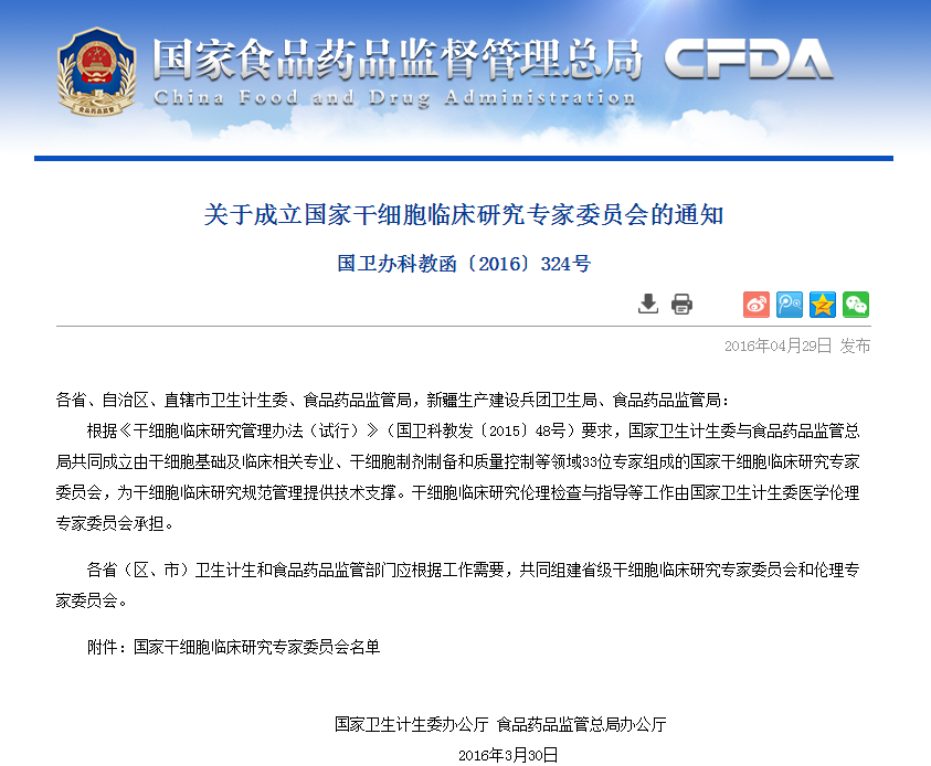 各省、自治區(qū)、直轄市衛(wèi)生計(jì)生委、食品藥品監(jiān)管局,新疆生產(chǎn)建設(shè)兵團(tuán)衛(wèi)生局、食品藥品監(jiān)管局: 根據(jù)《干細(xì)胞臨床研究管理辦法(試行)》(國衛(wèi)科教發(fā)〔2015〕48號)要求,國家衛(wèi)生計(jì)生委與食品藥品監(jiān)管總局共同成立由干細(xì)胞基礎(chǔ)及臨床相關(guān)專業(yè)、干細(xì)胞制劑…